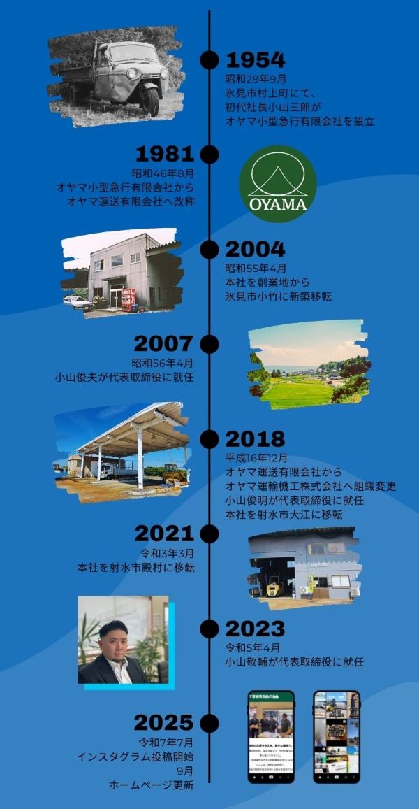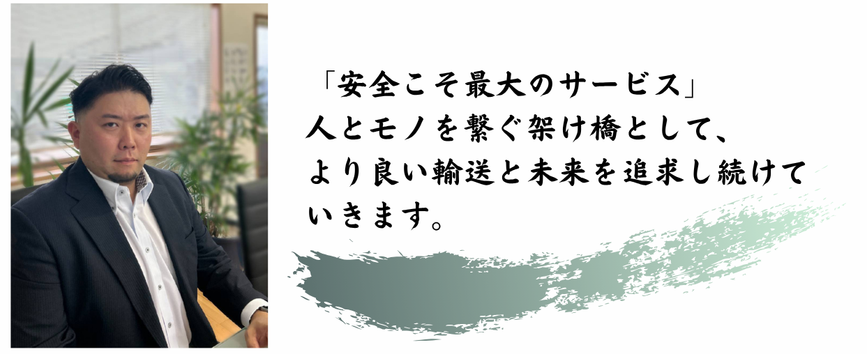 この度は、オヤマ運輸機工株式会社のホームページをご覧いただき、誠にありがとうございます。 弊社は昭和29年の創業以来、70年以上にわたり、時代の変化に合わせてサービスを進化させながら、地域の物流を支えることに尽力してまいりました。 現在、弊社が取り扱う荷物の多くは住宅関連資材です。 プレカット工場で精密に加工された木材が、現場で大工の皆様の手によって「家」という形に仕上がっていきます。 住宅は、個人にとっても地域にとっても、未来への大切な一歩です。だからこそ、私たちは「安全最優先」を徹底し確実で丁寧な輸送を心がけています。 今、物流業界は大きな転換期を迎えています。 人手不足や働き方改革など、課題は多岐にわたりますが、だからこそ若い世代の柔軟な発想とスピード感が求められています。 そして、若い世代が安心して長く働き続けられる環境づくりも、私たちの重要な使命です。 伝統を守りながらも、変化を恐れず、より良いサービスを追求していく――それが、私たちオヤマ運輸機工株式会社のスタイルです。 「人とモノをつなぐ架け橋」として、これからも地域の建築現場を支え、持続可能な未来づくりに貢献してまいります。 今後とも、オヤマ運輸機工株式会社をどうぞよろしくお願い申し上げます。 代表取締役社長 小山 敬輔